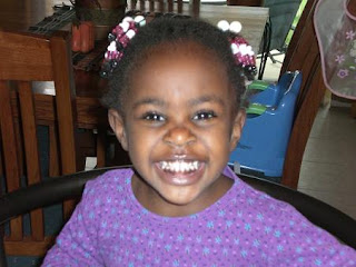 I was leaning on the counter in our kitchen making out my step son's chore list and Asha climbed up on the stool across the counter from me and sat down all nice and pretty like and says to me "mom please get the camera" I start to laugh and ask her "why?" She says again "please get the camera" so I get the camera and she gives me the above face and says "cheeeeese". It was just too funny.